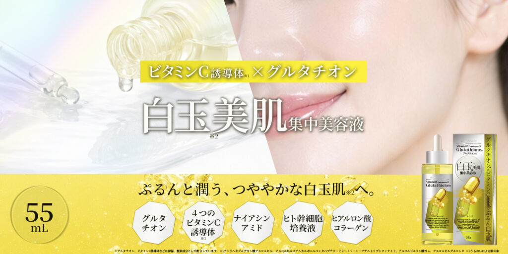 - グルタチオンと4つのビタミンC誘導体を配合した、白玉※1美肌発想の美容液です。