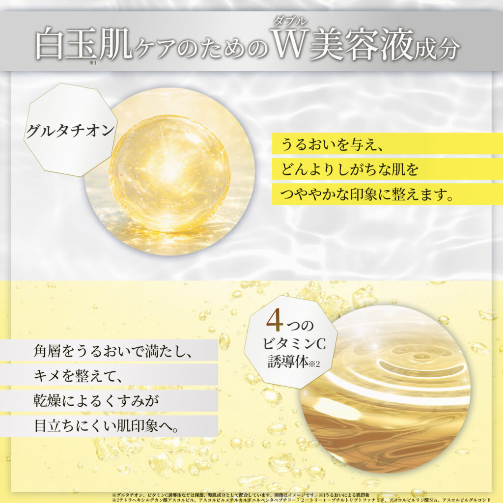 - 1本でまとめてケアできるから、毎日の白玉ケア習慣を無理なく続けられます。※1 乾燥やキメの乱れによる、くすんだ肌印象のこと